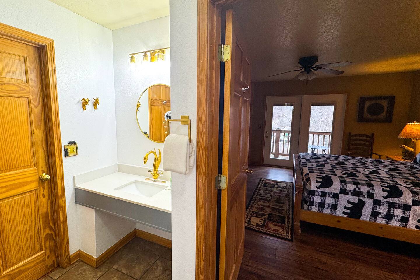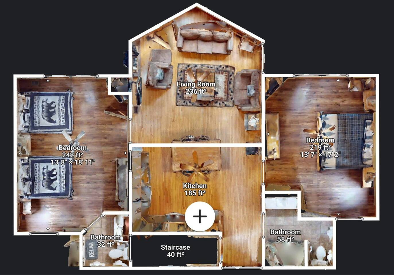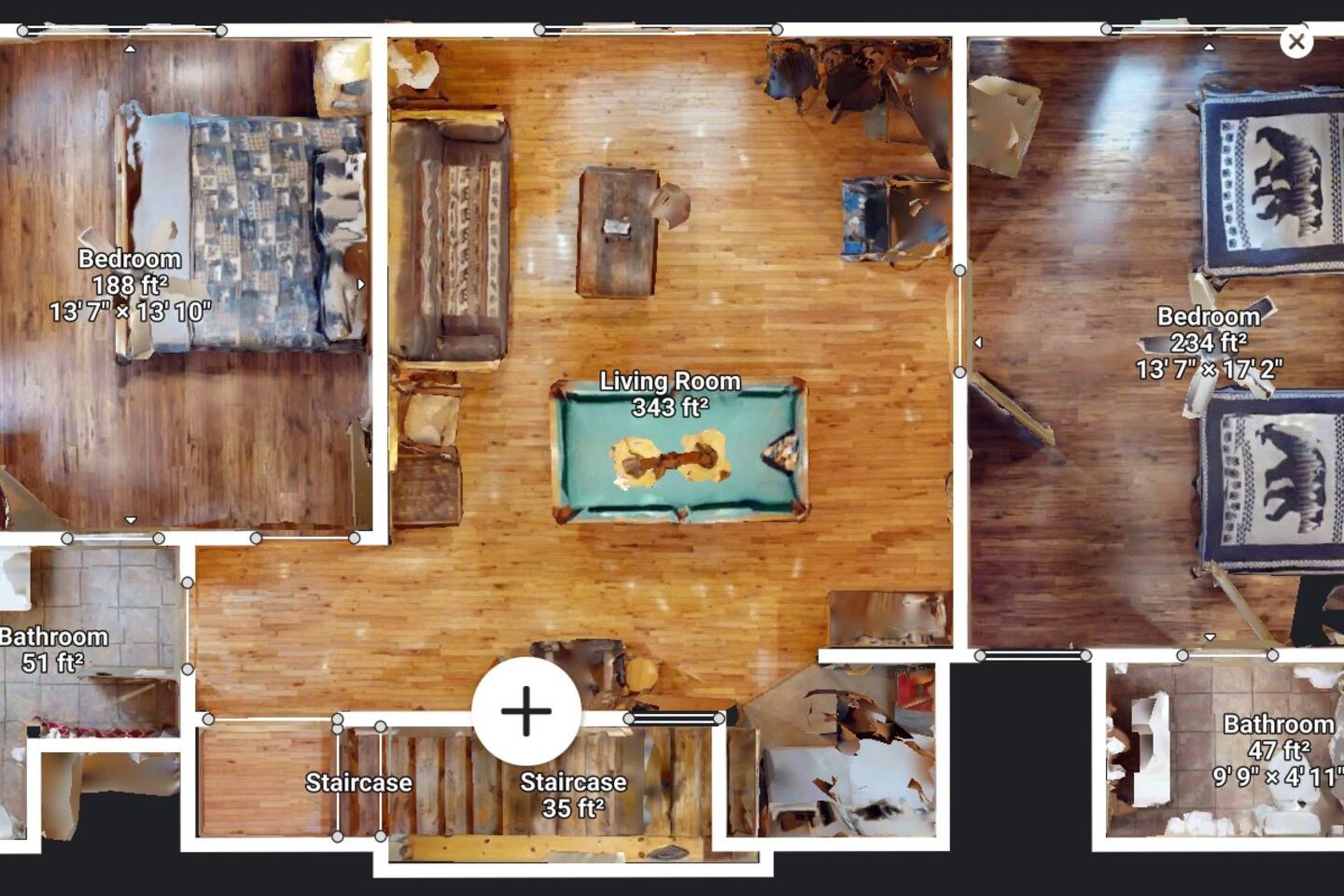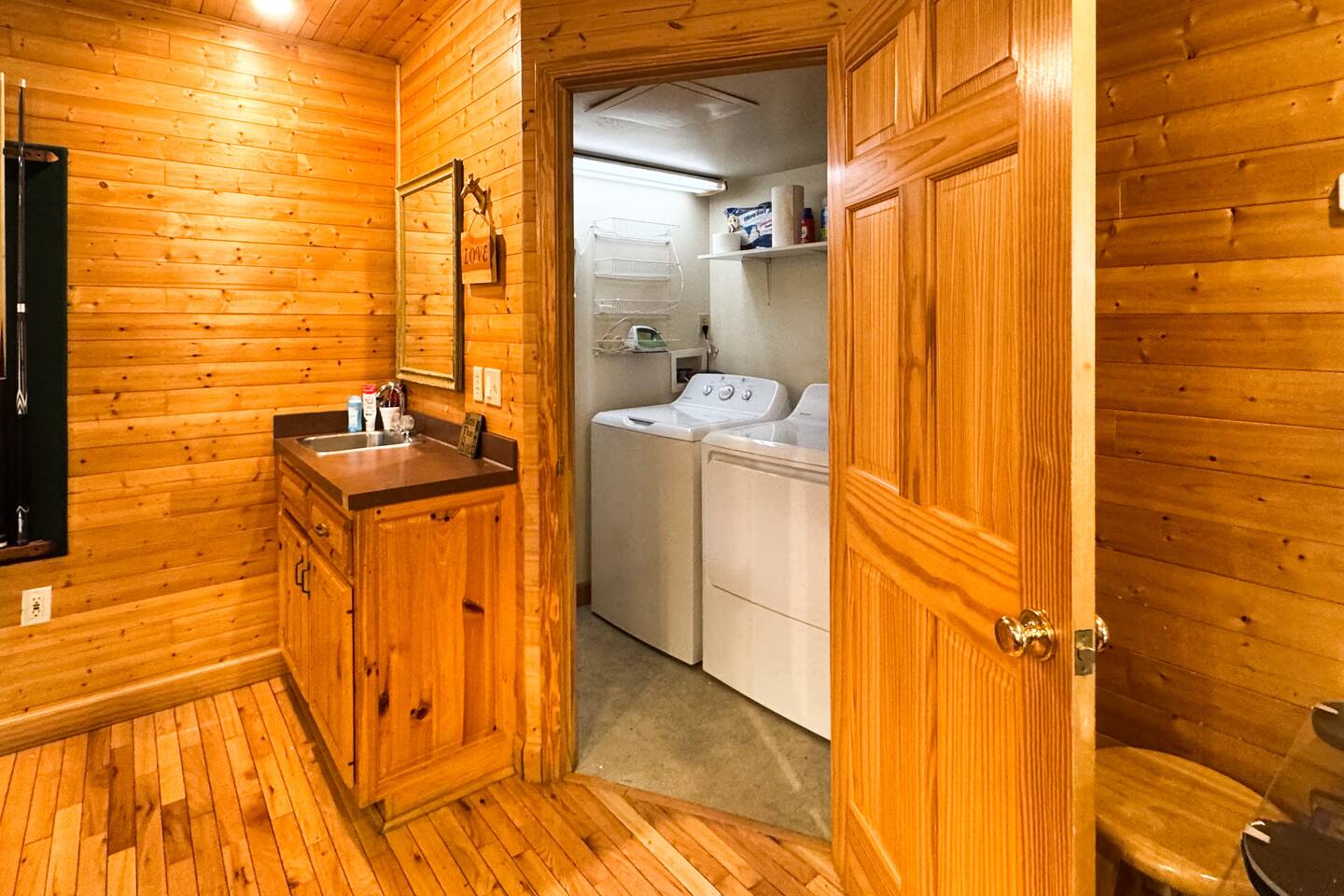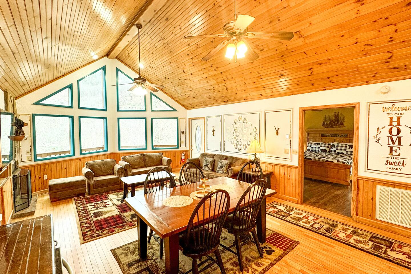 Entire cabin except owners closet.