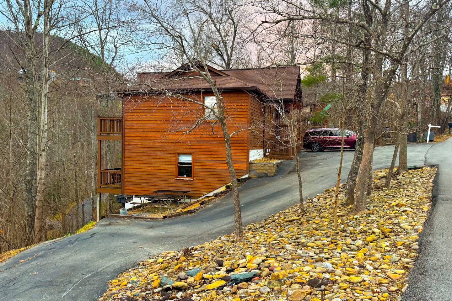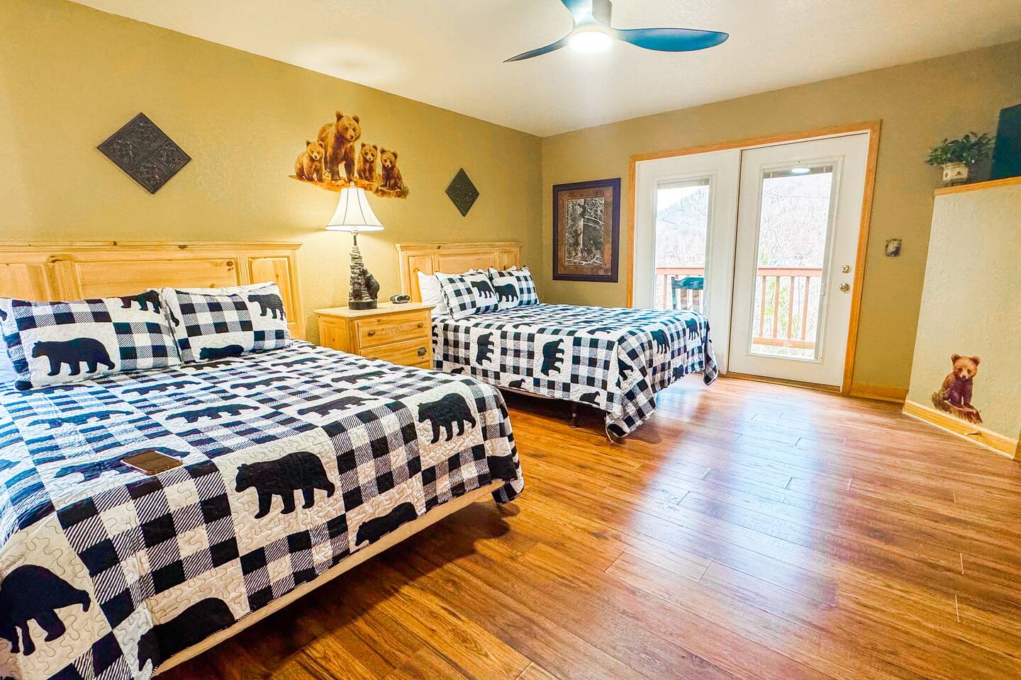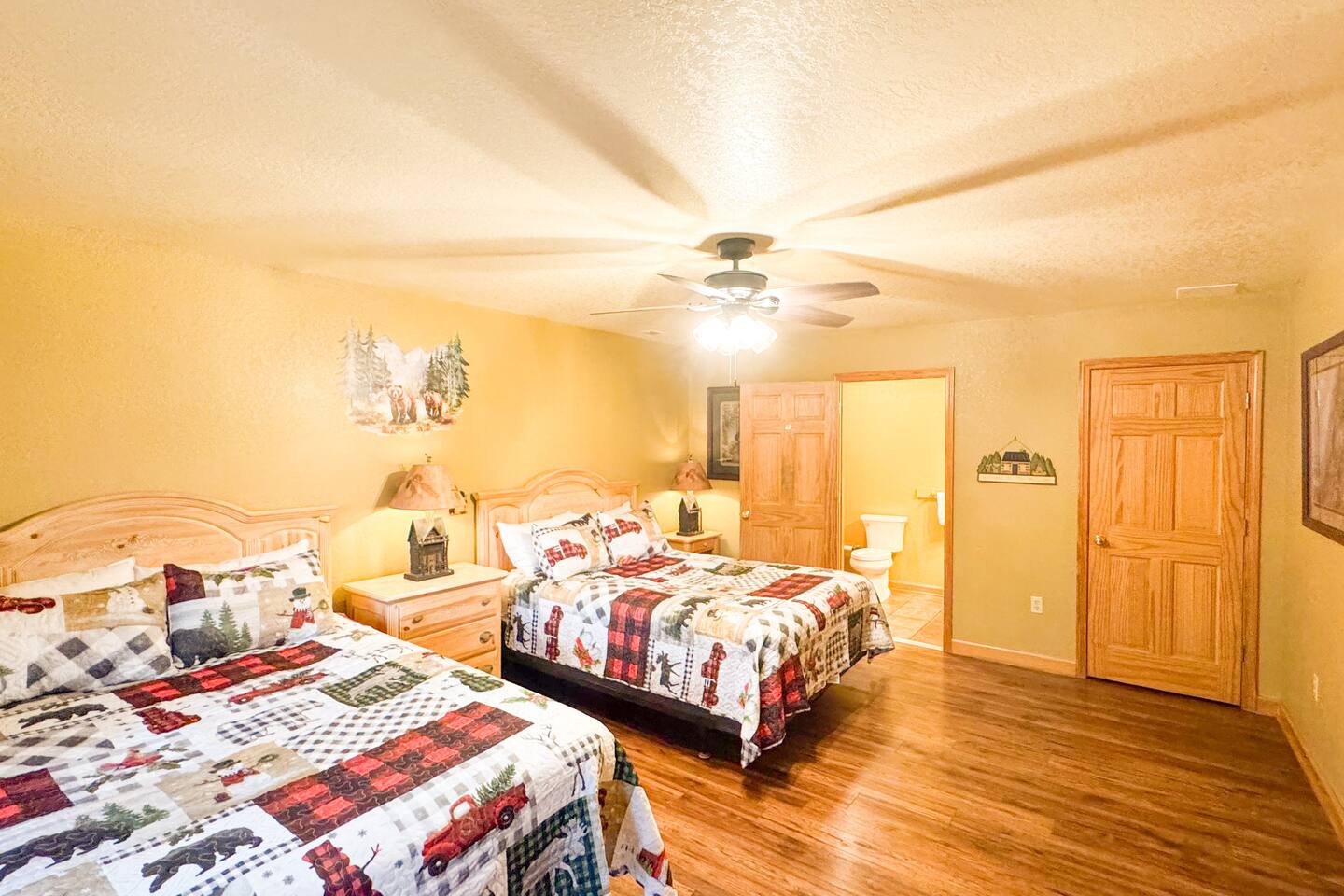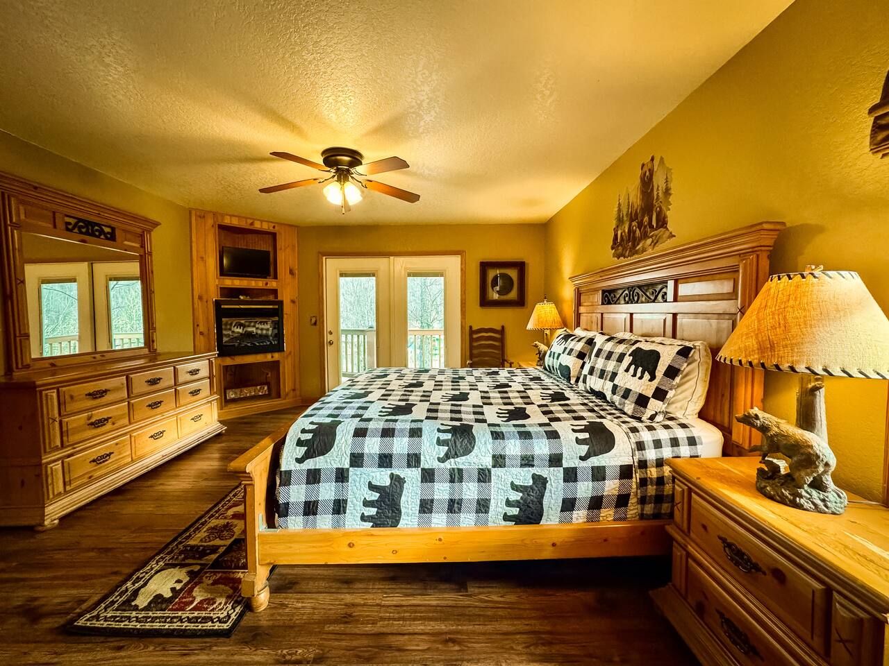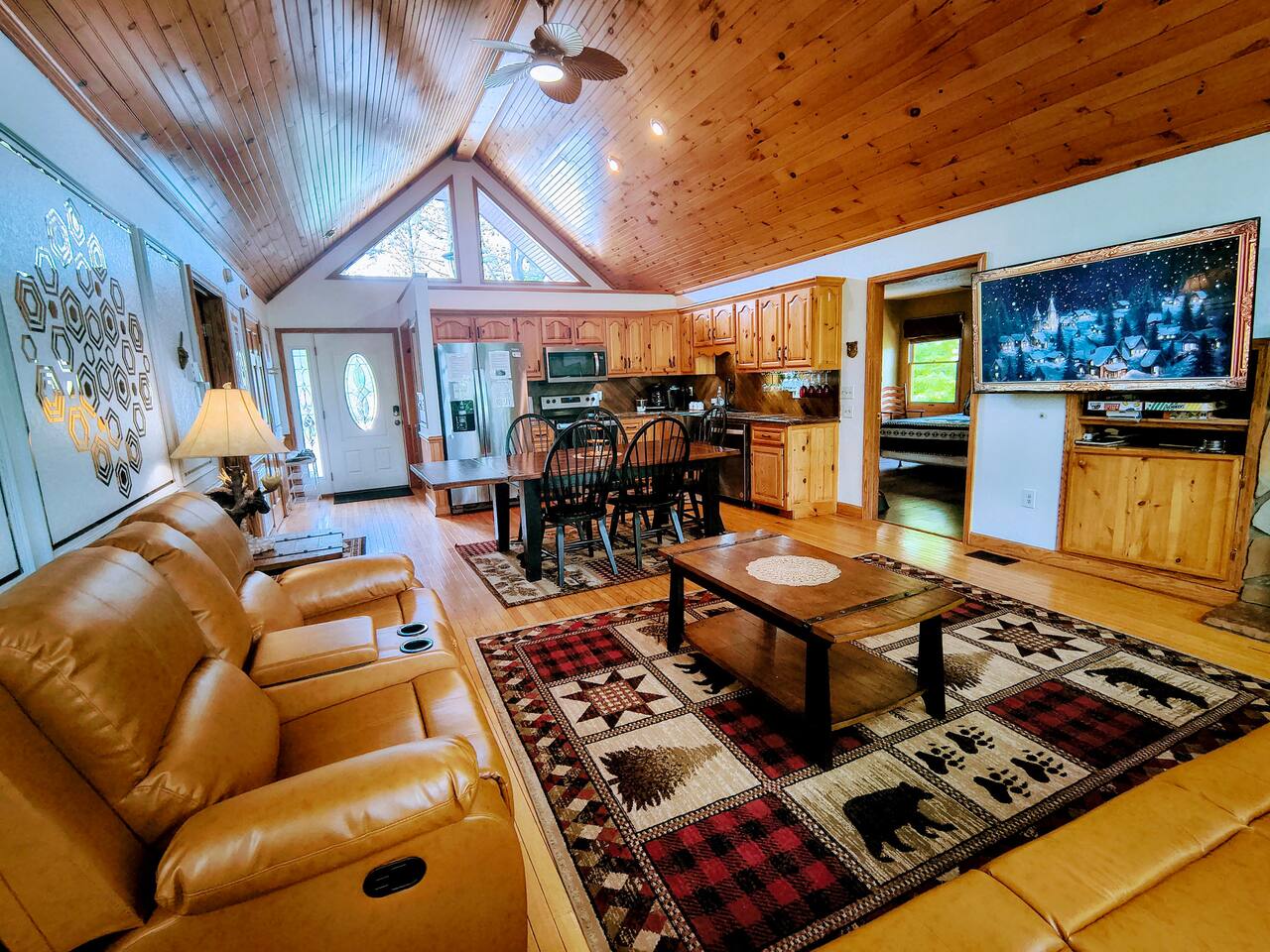 Welcome to Golden Castle Cabin - your perfect escape to the Great Smoky Mountains. Unwind, relax, and breathe in the refreshing mountain air while enjoying the soothing sounds of morning birdsong. Enjoy the best of both worlds - peaceful mountain living just minutes from the area’s top attractions, including downtown Gatlinburg, the National Park, city trolley stops, Dollywood, Ober, the SkyLift, Pigeon Forge attractions, unique Tennessee homemade wine tastings, and more - offering entertainment and relaxation for all age groups. • 5 minutes to Gatlinburg downtown strip • 1 mile to Anakeesta, Ripley's Mountain Coaster, Aquarium, Sky Bridge • 1 mile to trout fishing spot • 5 miles to Ober Ski Mountain • 10 miles to Dollywood, Pigeon Forge • 11 miles to Parrot Mountain • Plus, many other attractions near the cabin • 2 miles - Chalet Village cabins This stunning two-story log family cabin offers 2,400 square feet of luxurious living space, making it the perfect mountain retreat. The home features: Hardwood floors - Vaulted ceilings - Game room with Arcade Games - Four en suite bedrooms with full baths. NOTE: Please browse through the detailed pictures for a better view and understanding of the cabin's layout and amenities. Don't hesitate to SEND US A MESSAGE if you need any clarification. We would be happy to assist you as quickly as possible. VIEWS: In winter, the cabin offers stunning mountain views, while in summer, the trees create a cozy and enjoyable atmosphere, still allowing natural seclusion and tranquility with some beautiful sights from three outdoor spaces, including a spacious second-story deck with a bistro table and chairs. Each bedroom has direct access to one of the decks, and the picnic area is perfect for grilling as the sun sets. LIVING ROOM: Unwind on the theater-style reclining couches and enjoy your favorite movies or shows on the 65” Smart TV, set beside a cozy electric fireplace. BONUS LIVING ROOM (DOWNSTAIRS): Challenge friends to a game on the pool table or enjoy two arcade games while watching your favorite shows on the 45” LED Smart TV. The wet bar offers the perfect spot to craft a beverage before heading to the lower deck. KITCHEN & DINING: The well-equipped kitchen boasts stainless steel appliances and ample storage. Gather around the dining table to share meals and create lasting memories in this inviting space. PRIMARY SUITE: The primary suite features an electric fireplace and a spacious walk-in closet, while three of the bedrooms come equipped with Smart TVs for added comfort and entertainment EXPLORE THIS AREA: Conveniently located just 1 mile from downtown Gatlinburg, where you can explore culinary gems, an aquarium, a water park, a rope course, zip lines, and museums. Spend a fun-filled day at Ober Gatlinburg, a ski resort and amusement park perfect for winter sports and year-round entertainment. For evening fun, visit the Gatlinburg Space Needle, featuring an observation deck, arcade, and movie theater. Immerse yourself in nature at the Great Smoky Mountains National Park, just 4 miles away, with the Sugarlands Visitor Center serving as the perfect starting point for your adventure. ADDITIONAL AMENITIES: Washer/dryer - Complimentary high-speed Wi-Fi THINGS TO KNOW: 🚫 No pets allowed. 🚗 4WD or traction is recommended during snow or challenging weather conditions but is not required in the summer. PARKING: 🚗 Ample parking for 4+ vehicles—a rare find for mountain cabins! GUEST ENTRY: This home uses an E-lock with a unique code that resets after each guest's stay. 🐻 SMOKY MOUNTAIN BEARS: Seeing bears is one of the most exciting and memorable parts of visiting the Smokies! To help keep them (and you) safe: • Don’t leave food in your car or outside the cabin • Keep all doors locked • Secure trash cans as instructed • And most importantly, please don’t feed the bears The Smoky Mountains are their home - we’re just guests here 😊 We are a family-owned and operated business, and we absolutely love the Smokies! We work hard to ensure you have a perfect stay and would be truly delighted to host you as our guests.