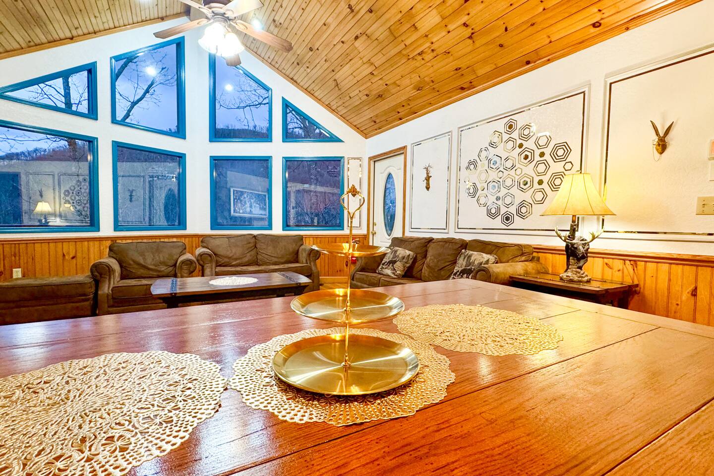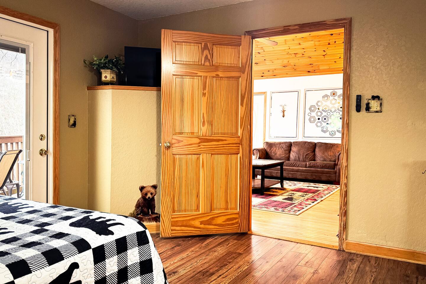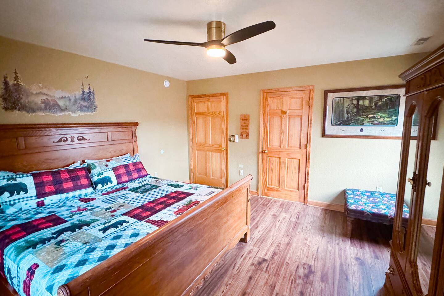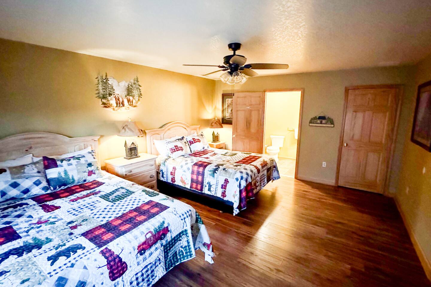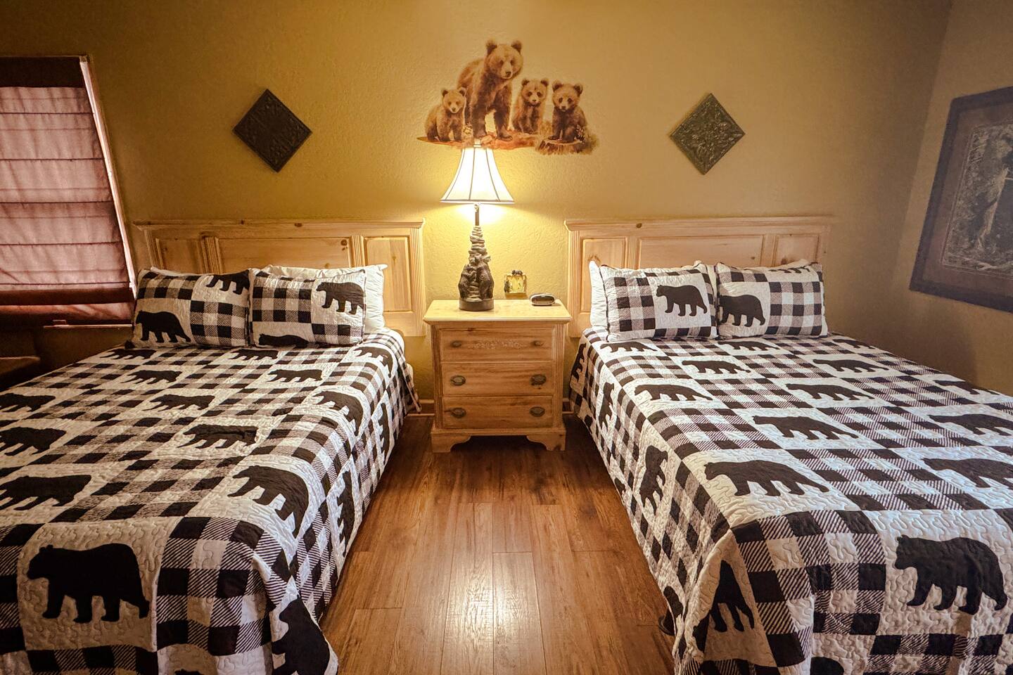 Welcome to Golden Castle Cabin - your perfect escape to the Great Smoky Mountains. Unwind, relax, and breathe in the refreshing mountain air while enjoying the soothing sounds of morning birdsong. Enjoy the best of both worlds - peaceful mountain living just minutes from the area’s top attractions, including downtown Gatlinburg, the National Park, city trolley stops, Dollywood, Ober, the SkyLift, Pigeon Forge attractions, unique Tennessee homemade wine tastings, and more - offering entertainment and relaxation for all age groups. • 5 minutes to Gatlinburg downtown strip • 1 mile to Anakeesta, Ripley's Mountain Coaster, Aquarium, Sky Bridge • 1 mile to trout fishing spot • 5 miles to Ober Ski Mountain • 10 miles to Dollywood, Pigeon Forge • 11 miles to Parrot Mountain • Plus, many other attractions near the cabin • 2 miles - Chalet Village cabins This stunning two-story log family cabin offers 2,400 square feet of luxurious living space, making it the perfect mountain retreat. The home features: Hardwood floors - Vaulted ceilings - Game room with Arcade Games - Four en suite bedrooms with full baths. NOTE: Please browse through the detailed pictures for a better view and understanding of the cabin's layout and amenities. Don't hesitate to SEND US A MESSAGE if you need any clarification. We would be happy to assist you as quickly as possible. VIEWS: In winter, the cabin offers stunning mountain views, while in summer, the trees create a cozy and enjoyable atmosphere, still allowing natural seclusion and tranquility with some beautiful sights from three outdoor spaces, including a spacious second-story deck with a bistro table and chairs. Each bedroom has direct access to one of the decks, and the picnic area is perfect for grilling as the sun sets. LIVING ROOM: Unwind on the theater-style reclining couches and enjoy your favorite movies or shows on the 65” Smart TV, set beside a cozy electric fireplace. BONUS LIVING ROOM (DOWNSTAIRS): Challenge friends to a game on the pool table or enjoy two arcade games while watching your favorite shows on the 45” LED Smart TV. The wet bar offers the perfect spot to craft a beverage before heading to the lower deck. KITCHEN & DINING: The well-equipped kitchen boasts stainless steel appliances and ample storage. Gather around the dining table to share meals and create lasting memories in this inviting space. PRIMARY SUITE: The primary suite features an electric fireplace and a spacious walk-in closet, while three of the bedrooms come equipped with Smart TVs for added comfort and entertainment EXPLORE THIS AREA: Conveniently located just 1 mile from downtown Gatlinburg, where you can explore culinary gems, an aquarium, a water park, a rope course, zip lines, and museums. Spend a fun-filled day at Ober Gatlinburg, a ski resort and amusement park perfect for winter sports and year-round entertainment. For evening fun, visit the Gatlinburg Space Needle, featuring an observation deck, arcade, and movie theater. Immerse yourself in nature at the Great Smoky Mountains National Park, just 4 miles away, with the Sugarlands Visitor Center serving as the perfect starting point for your adventure. ADDITIONAL AMENITIES: Washer/dryer - Complimentary high-speed Wi-Fi THINGS TO KNOW: 🚫 No pets allowed. 🚗 4WD or traction is recommended during snow or challenging weather conditions but is not required in the summer. PARKING: 🚗 Ample parking for 4+ vehicles—a rare find for mountain cabins! GUEST ENTRY: This home uses an E-lock with a unique code that resets after each guest's stay. 🐻 SMOKY MOUNTAIN BEARS: Seeing bears is one of the most exciting and memorable parts of visiting the Smokies! To help keep them (and you) safe: • Don’t leave food in your car or outside the cabin • Keep all doors locked • Secure trash cans as instructed • And most importantly, please don’t feed the bears The Smoky Mountains are their home - we’re just guests here 😊 We are a family-owned and operated business, and we absolutely love the Smokies! We work hard to ensure you have a perfect stay and would be truly delighted to host you as our guests.