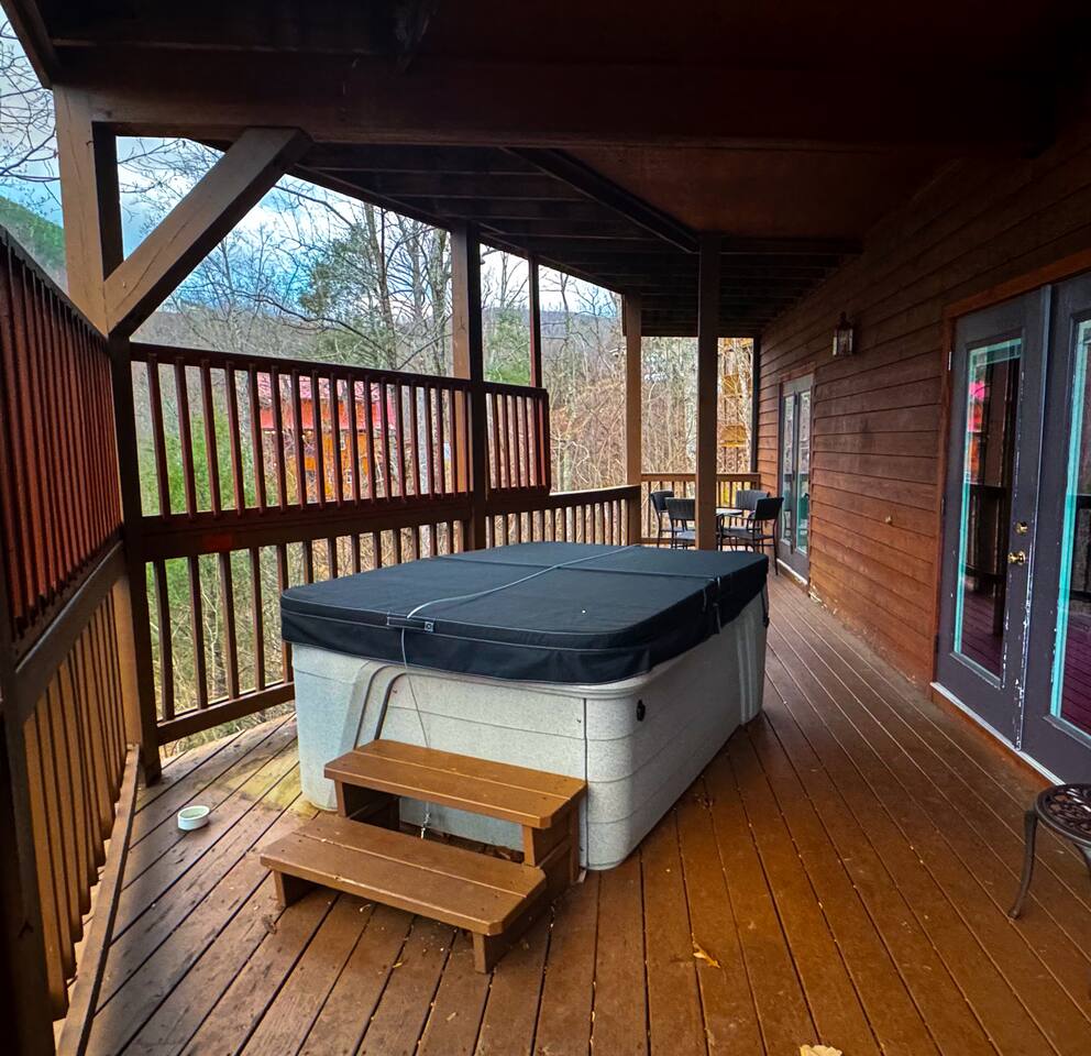 Luxury 4BR/4BA, 2400 SF cabin sleeps 12 (6 Beds) comfortably, just 5 min from Gatlinburg Strip. Closer to Ober, Dollywood, Pigeon Forge & more! Enjoy the best of both worlds—mountain living & city fun. Private hot tub, arcade games, pool table, vaulted ceilings & hardwood floors. Spacious game room w/ TV & board games. Decks on each floor offer wooded & mountain views. Level parking for 4+, fast Wi-Fi. Minutes to Anakeesta & Great Smoky Mountains National Park—perfect for families & groups!